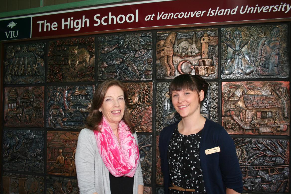 Catherine Brazier (left), newly appointed Principal of The High School at VIU and Rebecca Leigh, High School alumna and Marketing Assistant with VIU, are ready to welcome Canadian and international students to the school September 2.