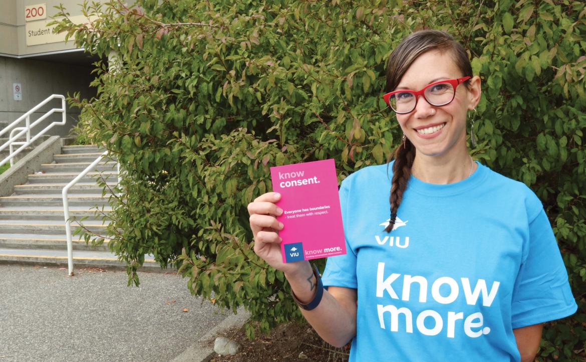 “This is certainly an interesting time to be doing this type of work – we are all learning so much about consent and sexual violence on campuses and in society,” says Chantelle Spicer, VIU Students’ Union, Women Students’ Representative. “The goal of the Know More campaign should always be to provide opportunities for the campus community to engage in a deeper conversation about what consent means in our daily actions – it’s about more than sex! Consent intersects with issues of basic respect for one another, Indigenous sovereignty and land rights, and digital spaces. We all have so much more to learn as we deepen our ability to live more consensual lives.”
