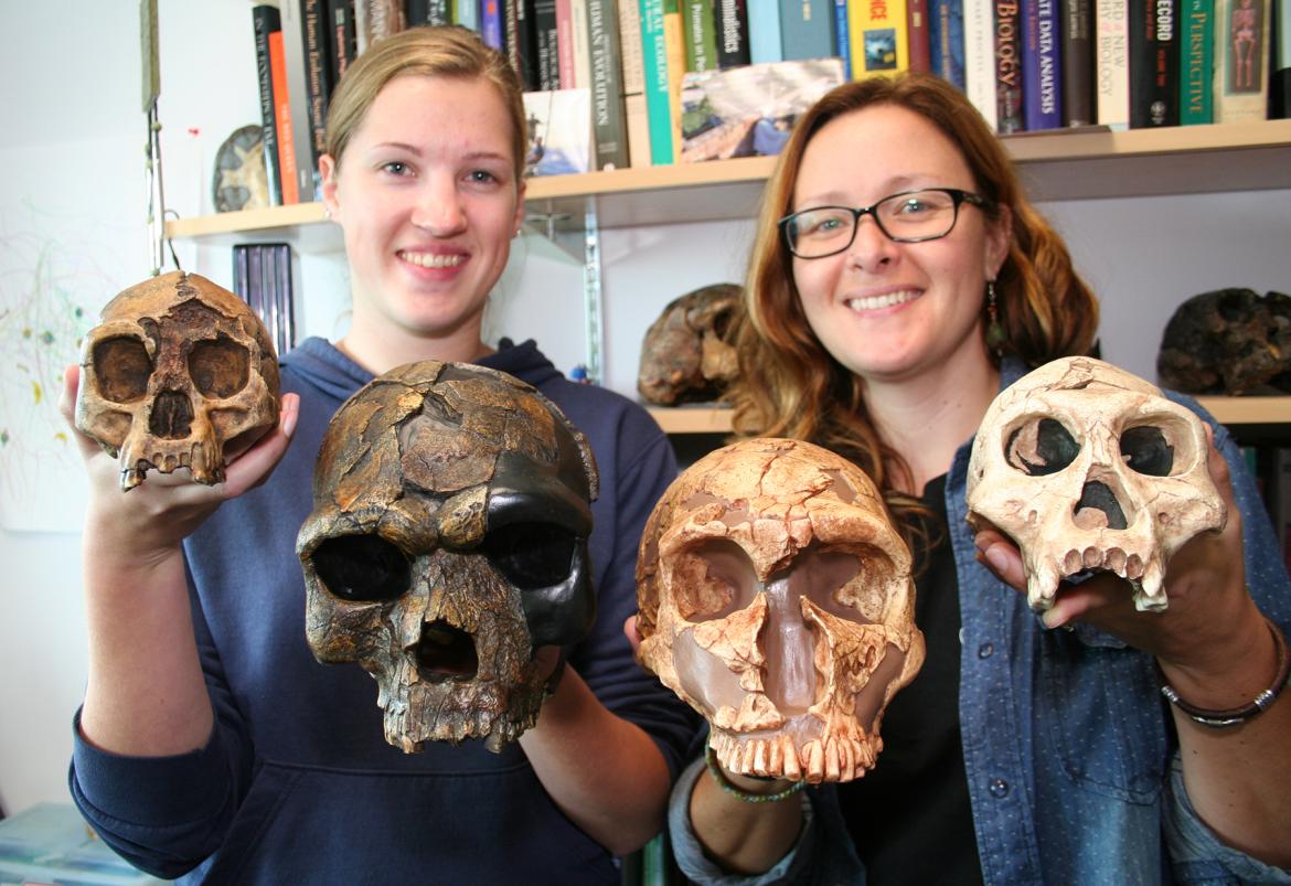 VIU Anthropology students Michelle Ferraby (left) and Cari McIntyre show off casts of fossils of human ancestors dating back thousands of years. This special collection will be on display during VIU’s 2014 Open House on Oct. 3. Residents and families are invited to explore VIU’s Nanaimo campus and participate in fun, interactive activities, demonstrations, a VIU Expo, open classrooms, tours, and much more.