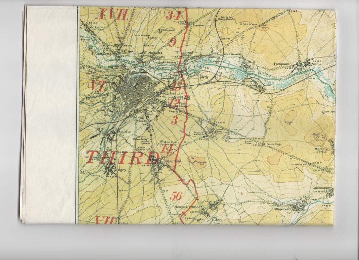 A map of Arras, where poet and soldier Edward Thomas died at Vimy Ridge in 1917 during WWI.